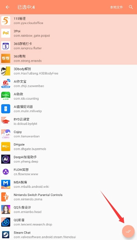 从列表里挑选想要分身的应用,点击底部的确认按钮,就能生成可以独立运行的副本程序了。