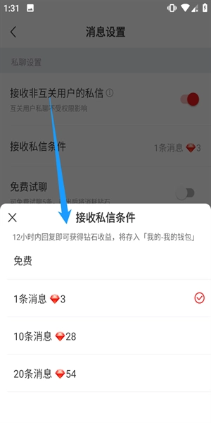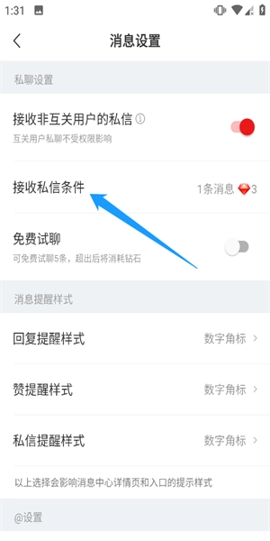 根据自己的需求设置私信接收条件就行啦,12小时内回复还能拿到钻石收益呢。