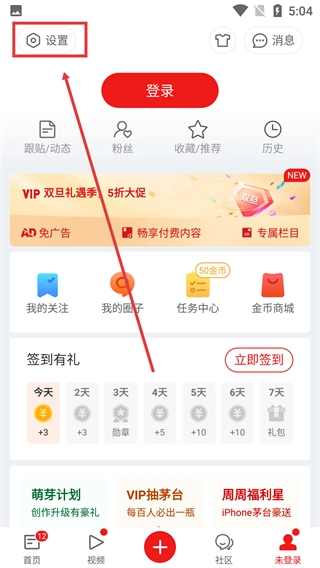 在首页点击底部的【未登录】选项,就能进入个人中心页面。