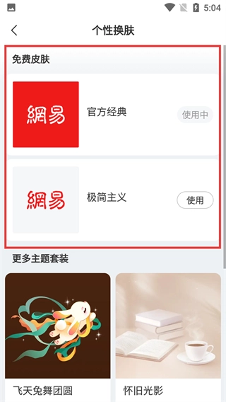 在个性换肤界面中,你可以挑选免费皮肤,只需点击对应皮肤的【使用】按钮,就能完成界面皮肤的更换。