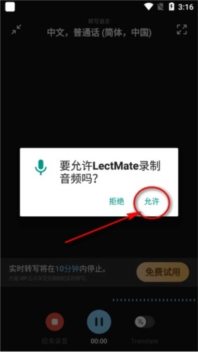 使用高精同传功能需要授权录音权限,请在弹出提示时选择“允许”,以保障录制能够正常开展。