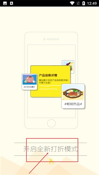 点击【开启全新打折模式】按钮,进入相应页面后,不仅能查看【产品信息详情】,还可以浏览带有#打折优惠#和#畅销热品#标签的内容。