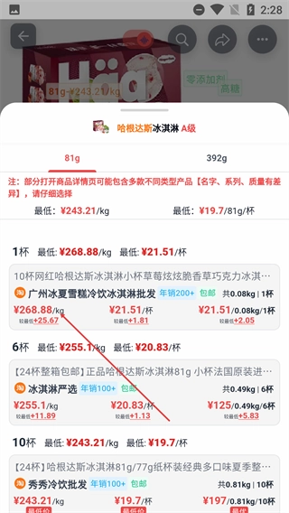在规格选择页面,依据实际需求挑选对应的包装规格(例如81g/杯)以及商家,进而完成商品的选购流程。