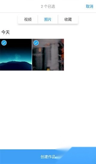 挑选需要编辑的照片和视频片段,点击“创建作品”。