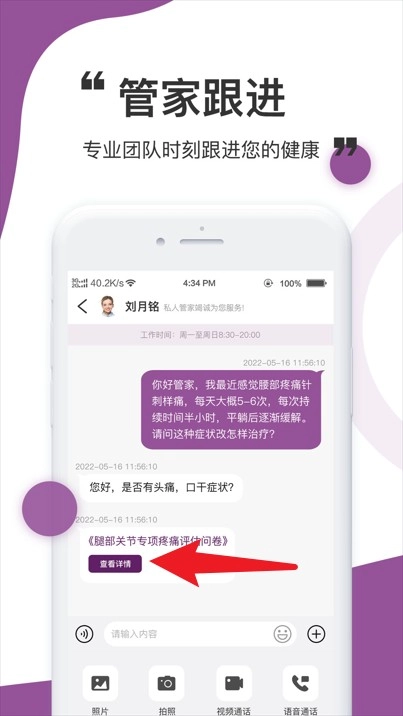 健康管家功能具备实时沟通能力,专业团队可在线为用户提供专属的健康建议与定制化方案。