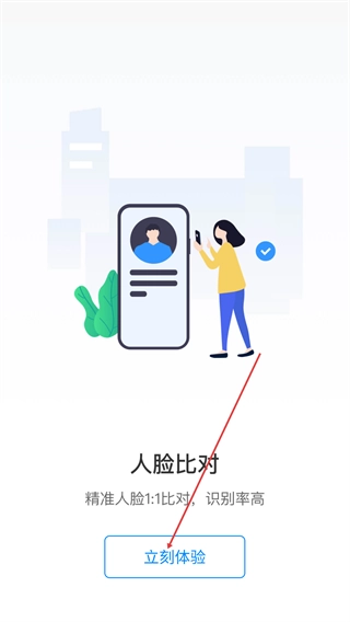 找到【人脸比对】功能,它能够实现精准的人脸1:1比对,识别准确率较高,点击【立刻体验】按钮就能开启该功能。