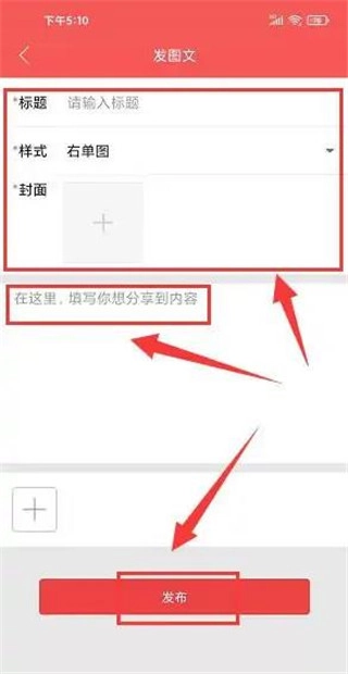进入发图文的窗口后,依次输入标题、选择样式、设置封面、填写问政相关内容,最后点击【发布】按钮就可以啦
