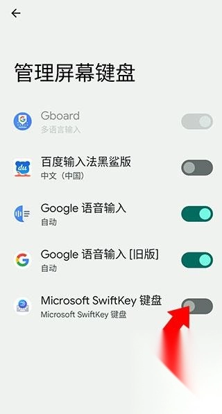 点击之后进入下方界面,找到微软输入法并开启它后方的开关