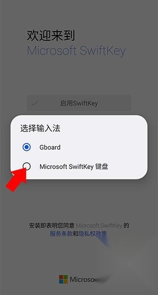 点击之后通常会弹出下方的窗口,不同手机系统可能会有一些差别,但只要选择微软输入法就行