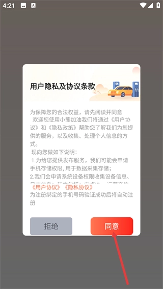 请您先仔细阅读【用户隐私及协议条款】,在充分了解其中包含的【用户协议】、【隐私政策】以及各项权限说明后,点击弹窗里的【同意】按钮,这样就能顺利进入软件的主界面了。