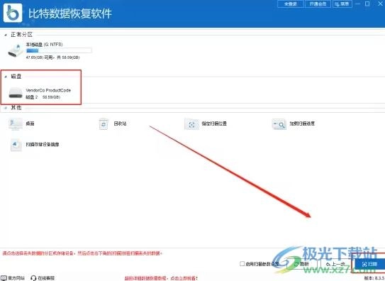 在扫描的页面点击内存卡的磁盘进行扫描。