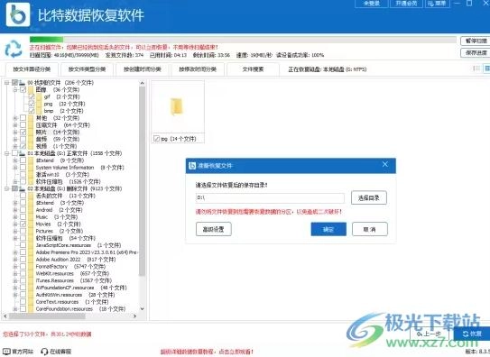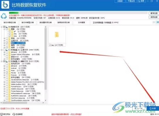 进入选择内存卡中重要数据进行备份的界面,勾选需要备份的数据后,直接点击右下角的恢复按钮即可。