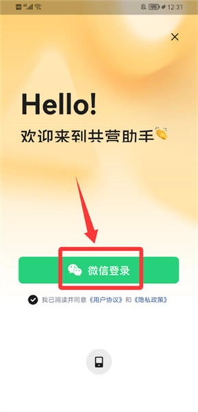 勾选协议及隐私政策后,使用微信授权完成登录。
