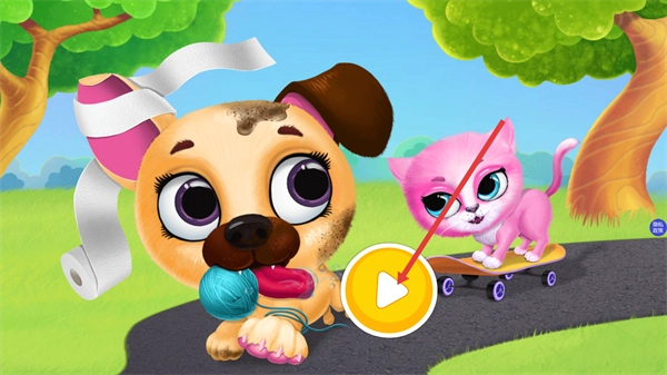 点击界面上的黄色播放按钮,就能进入这款宠物主题游戏的互动环节,开始接下来的宠物照料操作。