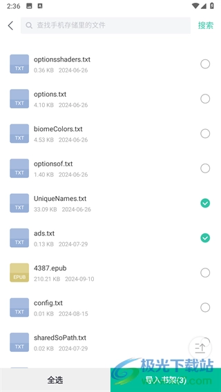 然后在扫描出来的文件里挑选你想导入的文件,点击右下角的“导入书架”按钮。
