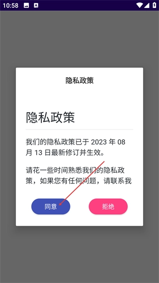 阅读更新后的【隐私政策】内容后,点击【同意】按钮即可进入应用主功能界面。