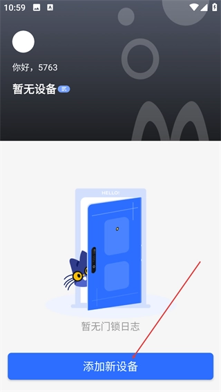 在主界面点击【添加新设备】按钮,即可开启智能门锁的设备添加流程。