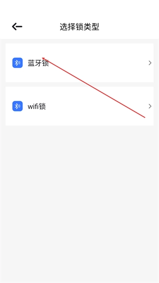 在选择锁类型的页面上,点击【蓝牙锁】这一选项,即可进入蓝牙锁的配对配置流程。