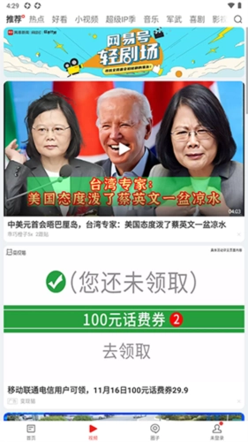点击底部视频栏,可以看到最新最全的视频新闻。