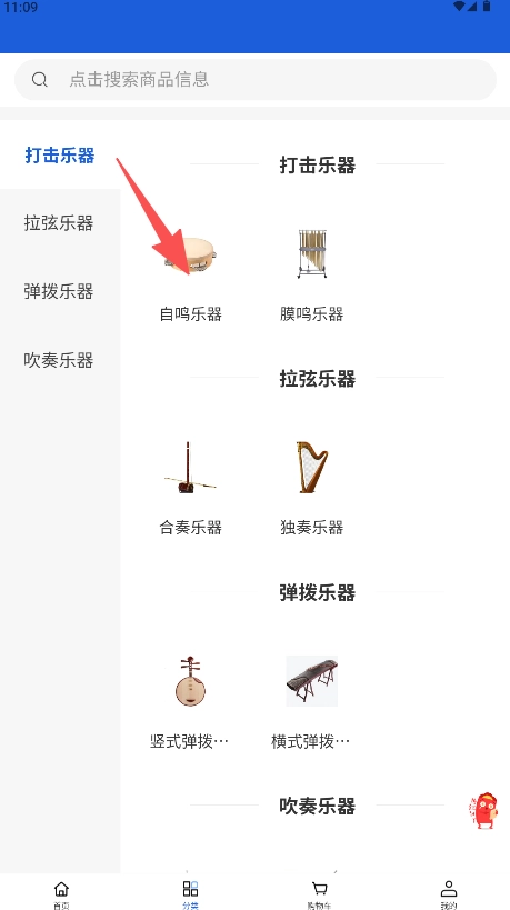 在分类界面点击浏览右侧出现的“自鸣乐器”。