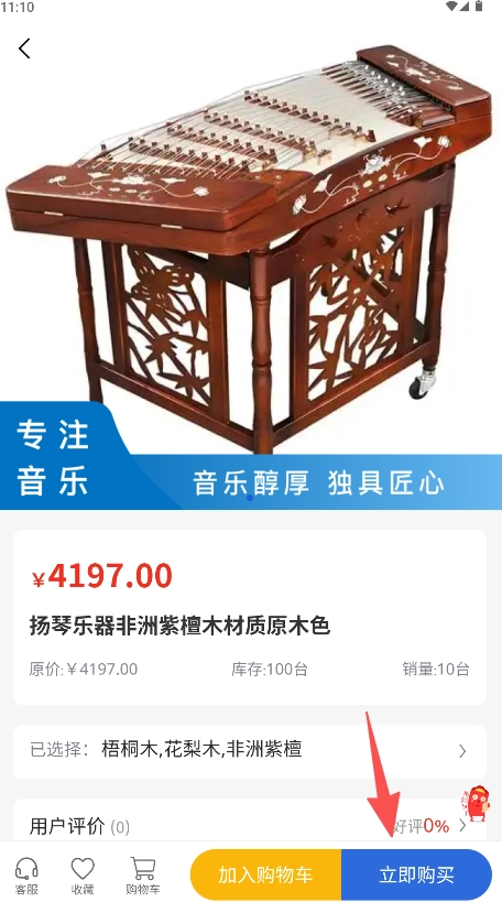 进入商品列表页面后,就能在这里浏览并挑选想要的商品(例如扬琴)。