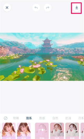在图片处理界面的下方选好你要加工的类型,在这里,还能通过添加贴纸、调整颜色深度等方式美化图片,完成加工后,选择并点击右上角的“”选项就能保存图片了。