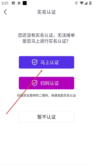 选定【司机】角色,点击对应的【马上认证】按钮。