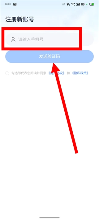 在注册页面,输入手机号,点击获取验证码。