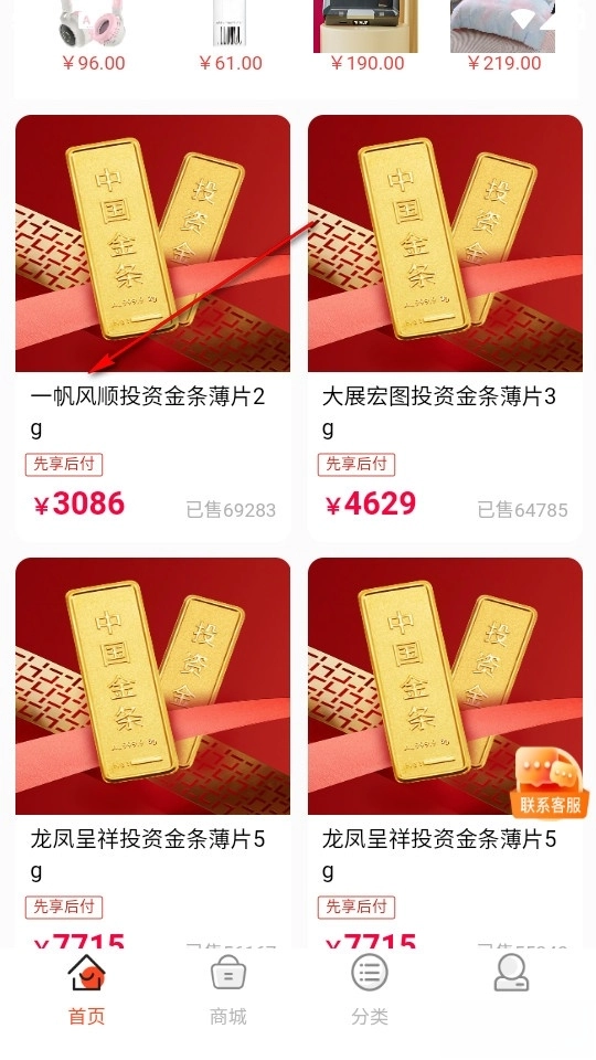 首先我们先点击进入软件首页,寻找我们所需的商品。