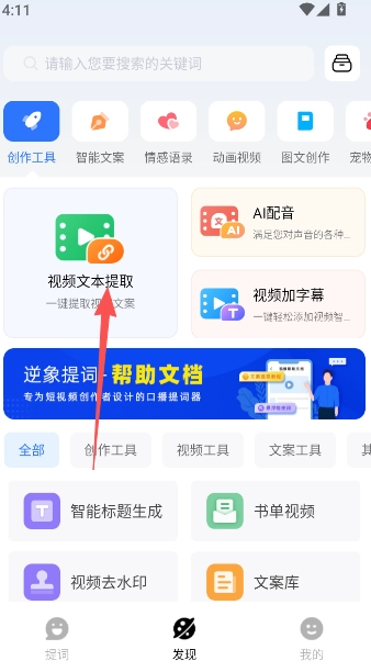 查看可操作的提词相关内容,像视频文本提取、AI配音之类的都可以。