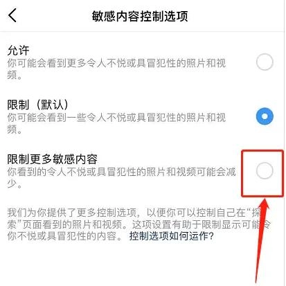 Ins上有不少敏感内容,你可以根据自己的需求去调整IG的敏感内容控制选项,之后点击【限制更多敏感内容】按钮就可以了。