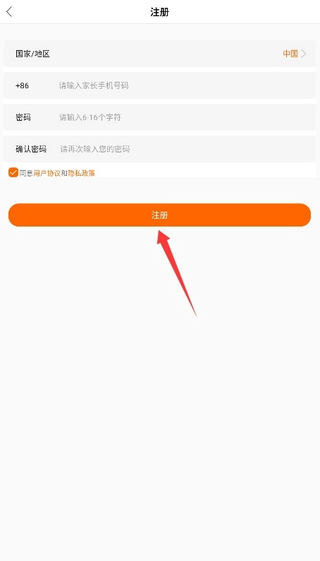 在注册页面输入手机号并设置登录密码,勾选同意相关协议后点击注册按钮,即可完成账号创建。