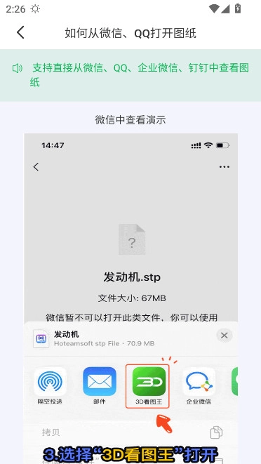 【3D看图王如何从QQ微信上打开图纸】