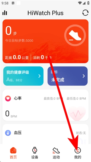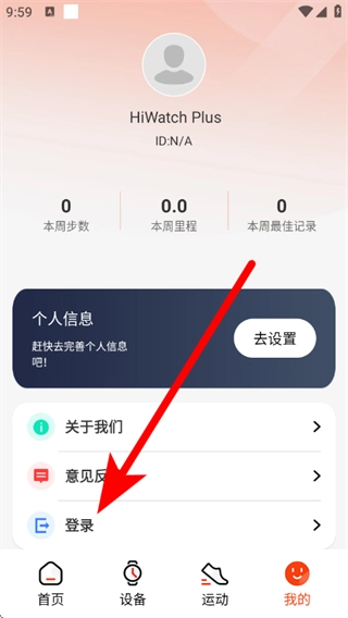 在hiwatchplus的首页,点击底部的“我的”选项,即可进入个人中心页面。