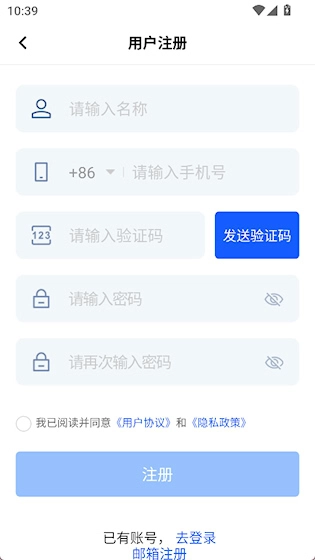 可以使用手机号注册,点击底部使用邮箱注册