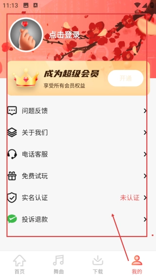在我的页面,【登录后可开通会员】,还能进行问题反馈、实名认证等操作。