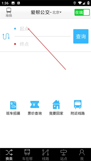 进入主界面后,在【起点】【终点】栏填写行程地点,点击【查询】按钮,就能获取公交换乘路线。
