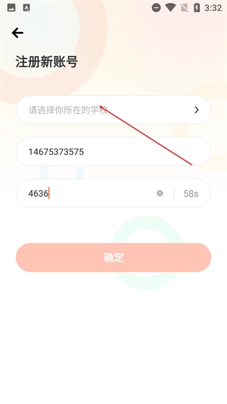 注册新账号的流程是:首先选择自己所在的学校,接着填写手机号码并获取验证码,输入验证码后点击【确定】按钮,即可完成注册。