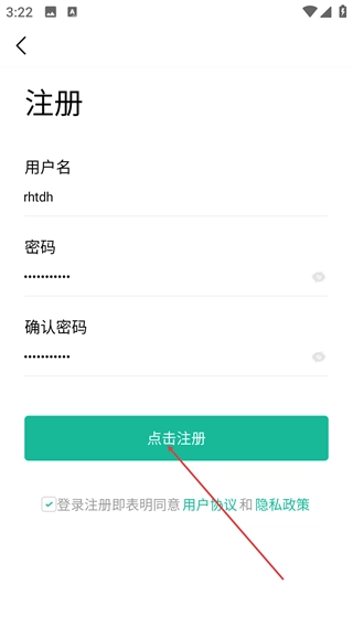 在登录页面,若您还没有账号,可点击【点击注册】按钮,随后按照页面提示填写用户名与密码,并勾选相关协议后完成注册操作。