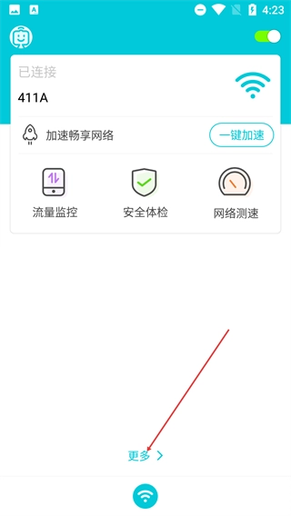 在网络管理主页点击【更多】按钮,就能进入包含WiFi列表在内的扩展功能界面,从而获取更多网络操作选项。
