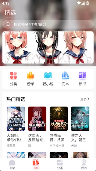 在书城界面寻找作品打开查看