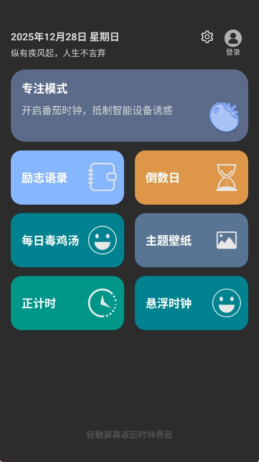 点击时钟卡片展示更多功能,如倒数日、正计时等