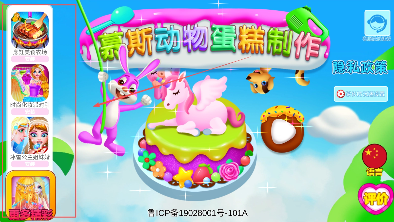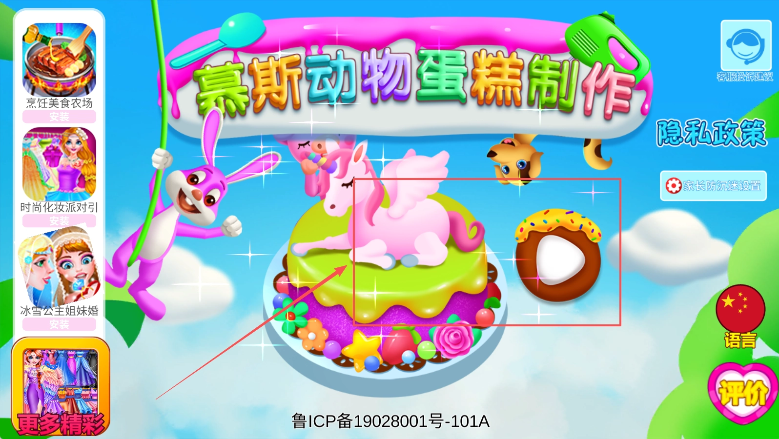 进入应用开启游戏时,首先需要在自由模式和闯关模式中做出选择,之后再从各式各样的动物造型里确定要制作的主题蛋糕类型。