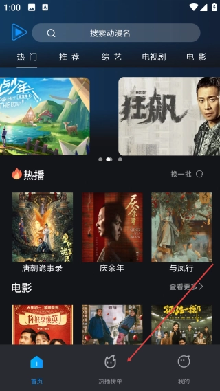 打开视频应用后进入首页,找到底部的【热播榜单】选项并点击,即可进入展示热播内容的分类页面。