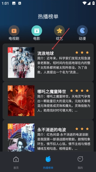 每天都会更新影视榜单,包含热度榜、口碑榜等不同类型,能实时查看热门影视的排名情况,根据自己的需求挑选当下热门的作品观看。