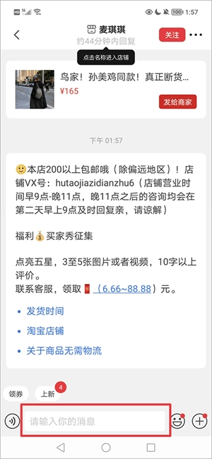 如何给店家发私信