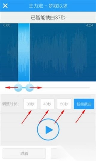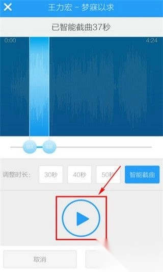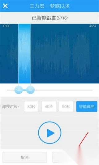 5、酷狗音乐已智能截取歌曲的高潮片段,你也可以根据需要自行调整截取范围