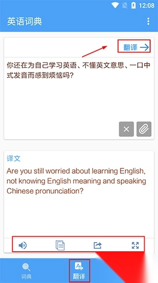 2、学习发音:点击翻译结果里的单词,就能听到标准发音,助力口语练习。