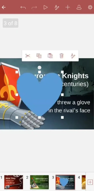 1、OnlyOffice手机版新增了三种填充类型,分别是渐变、纹理和图案。例如,打开一个幻灯片后,点击添加按钮即可使用这些新的填充类型。