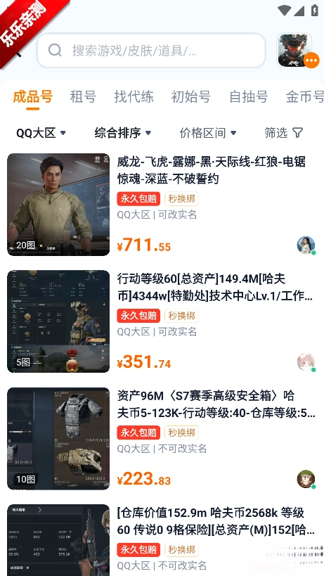 借助筛选功能,可依据游戏类型、段位等级、皮肤款式、装备配置等条件,精准定位到符合心意的账号。